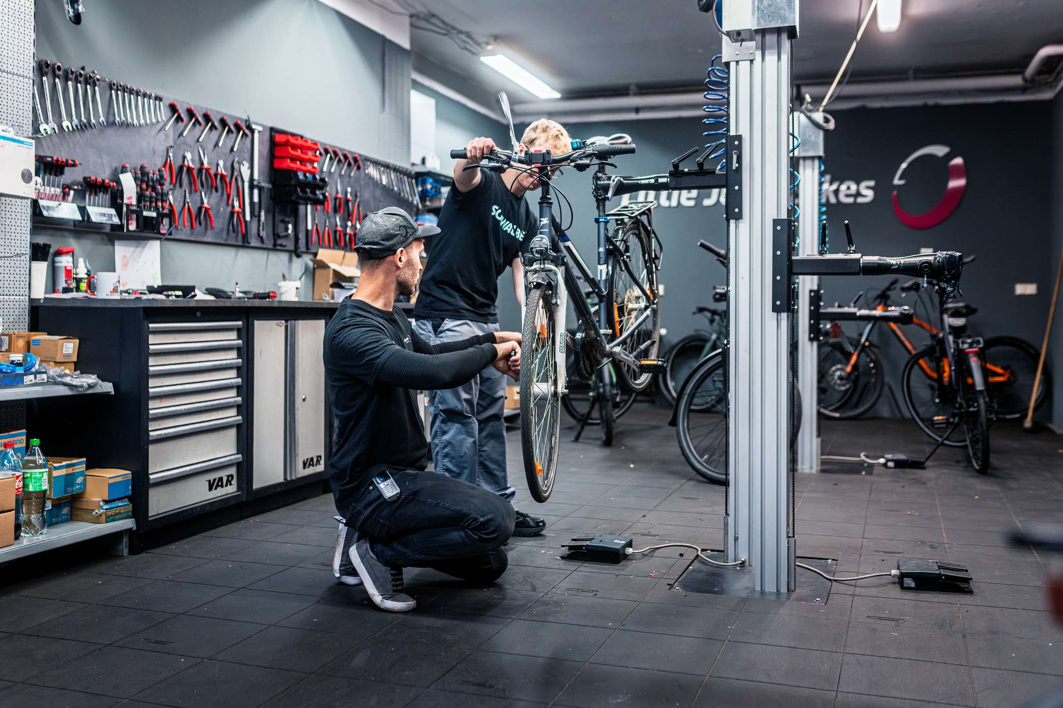 Beim Frühjahrscheck in deiner ljB-Werkstatt schauen wir dein Bike einmal komplett durch: Bremsen, Schaltung, Reifen, Antrieb – alles, was nach der Pause wieder sauber laufen muss.